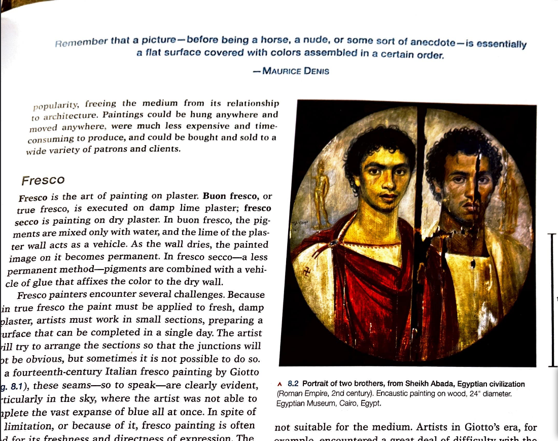 The painter Edgar Degas once said, “A painting requires a little mystery, some vagueness, some fantasy. When you always make your meaning perfectly plain you end up boring people.” Select a painting that you like from the textbook (any painting, from any chapter, by any artist – just make sure it is a painting) and (a) identify the painting you like by name, artist, and figure number, (b) explain why you like it in terms of visual elements and design principles, iconography, form, style, and content, and (c) explain how the painting contains mystery, vagueness, and/or fantasy.